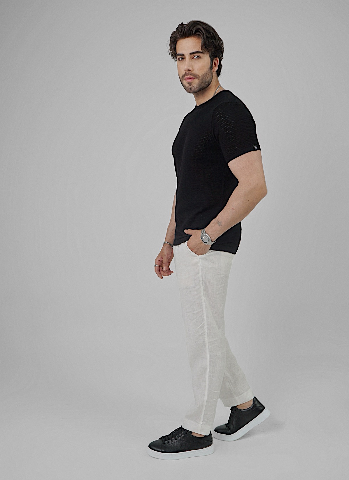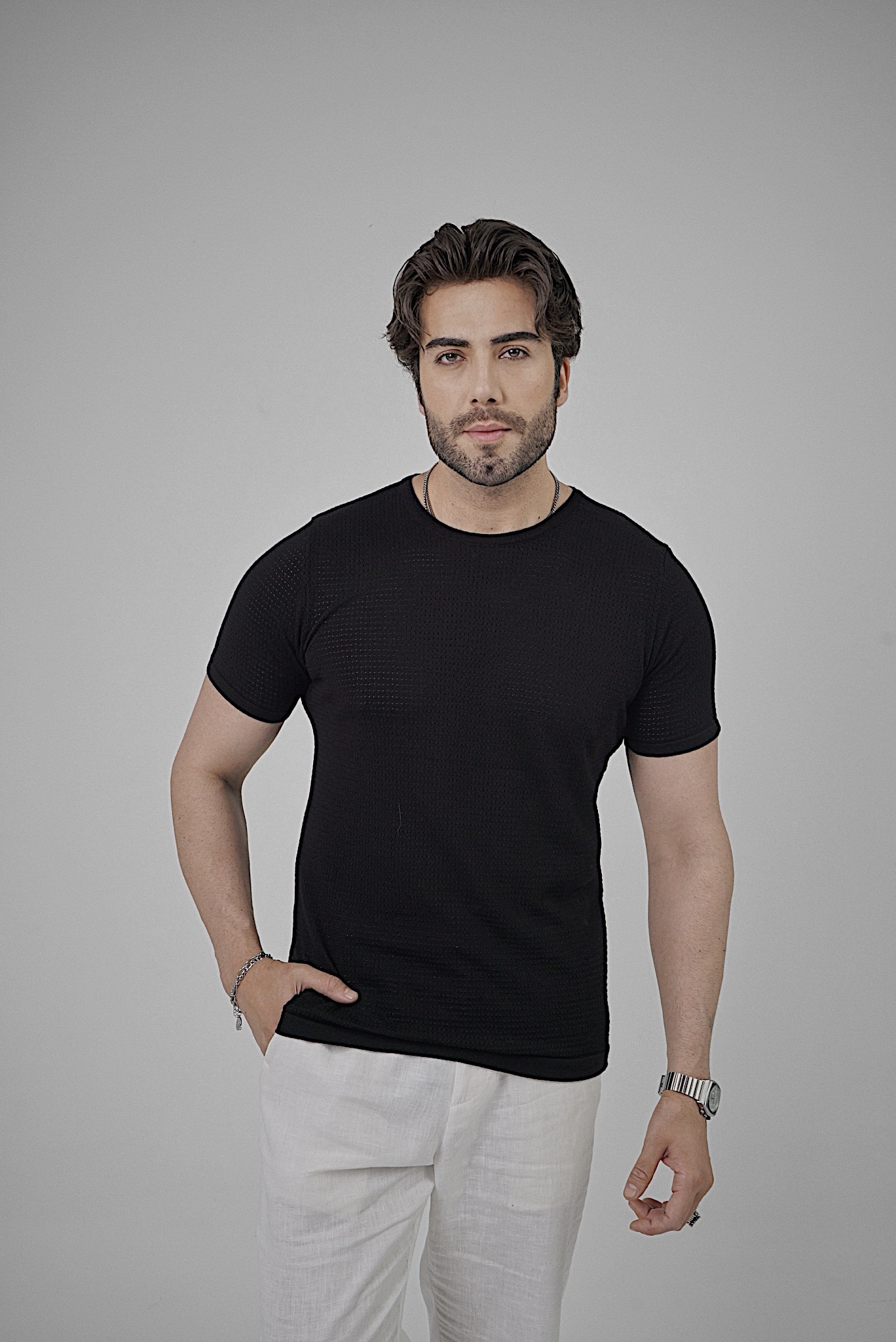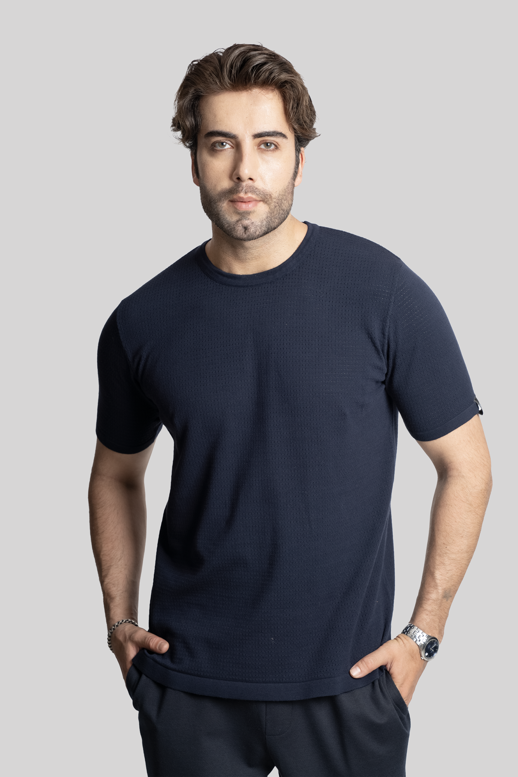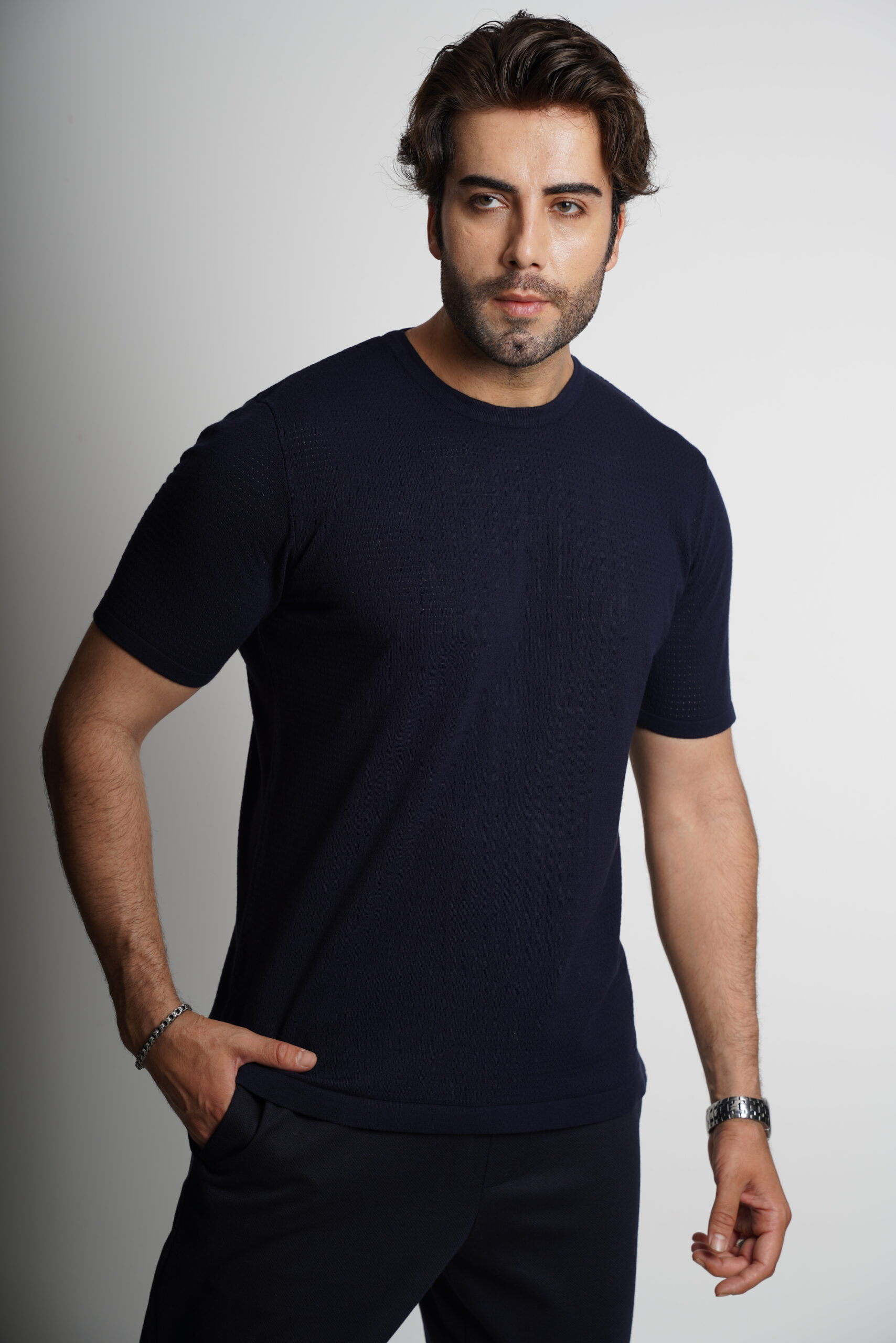 • T-shirt da uomo realizzata in maglia ajour leggera con raffinata vestibilità sartoriale.